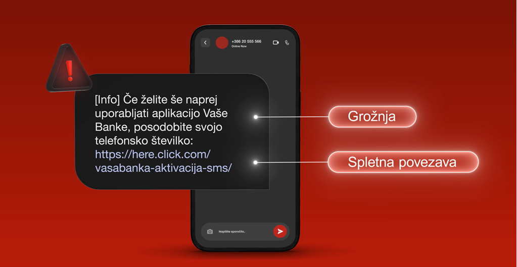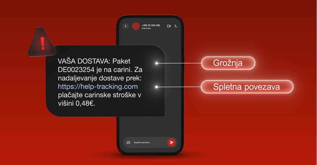 - grožnjo, da se bo nekaj hudega zgodilo, če takoj ne odgovorite (bančni račun bo zablokiran, paketa ne bo možno dostaviti, onemogočen bo dostop, nekdo drug bo pred vami kupil želeni izdelek ipd.)